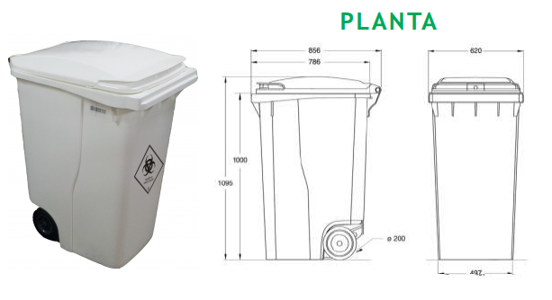 Contentor Hospitalar 2 Rodas – 360 Litros
