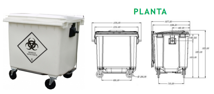 Contentor Hospitalar 4 Rodas – 1000 Litros